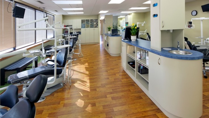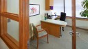 A 4,400 S.F. pediatric dental practice, designed for the efficient flow of patients and the staff, the business office is the core of the space with check-in and waiting on one side near the entrance and check-out on the other, adjacent to the exit. Natural light flows into the core of the space through glass in the cherry doors and window frames. An engineered bamboo floor provides warmth in patient treatment/procedure rooms and brightly colored laminate tops enliven the space. The extensive electrical and plumbing package required significant coordination with the tenant’s equipment vendors and scheduling with adjoining tenants to minimize disruption to their business, many of which were health care practices. Hubert has subsequently returned to perform an expansion, adding new treatment rooms to this rapidly expanding practice.